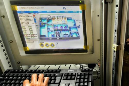 圖為監(jiān)控室管理平臺(tái)顯示的污水COD、氨氮、PH值等多項(xiàng)關(guān)鍵水質(zhì)指標(biāo)。
