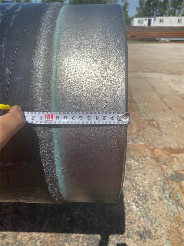 開始生產(chǎn)時,先用試驗(yàn)管在生產(chǎn)線上分別依次調(diào)節(jié)預(yù)熱溫度及膠粘劑防腐層的厚度,聚乙烯層的包覆采用側(cè)向纏繞工藝,應(yīng)確保搭接部分的聚乙烯完全輥壓密實(shí),并防止壓傷聚乙烯層表面,膠粘劑的涂敷采用側(cè)向纏繞工藝,且涂敷必須在環(huán)氧粉末膠化過程中進(jìn)行,以確保膠粘劑與環(huán)氧涂料能相互滲透,使其達(dá)到各項(xiàng)要求后方可開始生產(chǎn)。