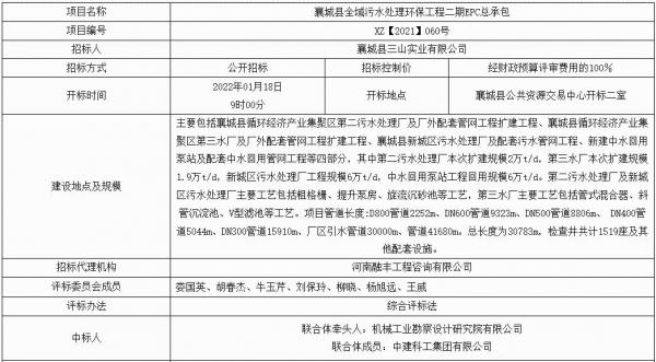 襄城縣全域污水處理環(huán)保工程二期EPC總承包(不見(jiàn)面開(kāi)標(biāo))-結(jié)果公告-****標(biāo)段