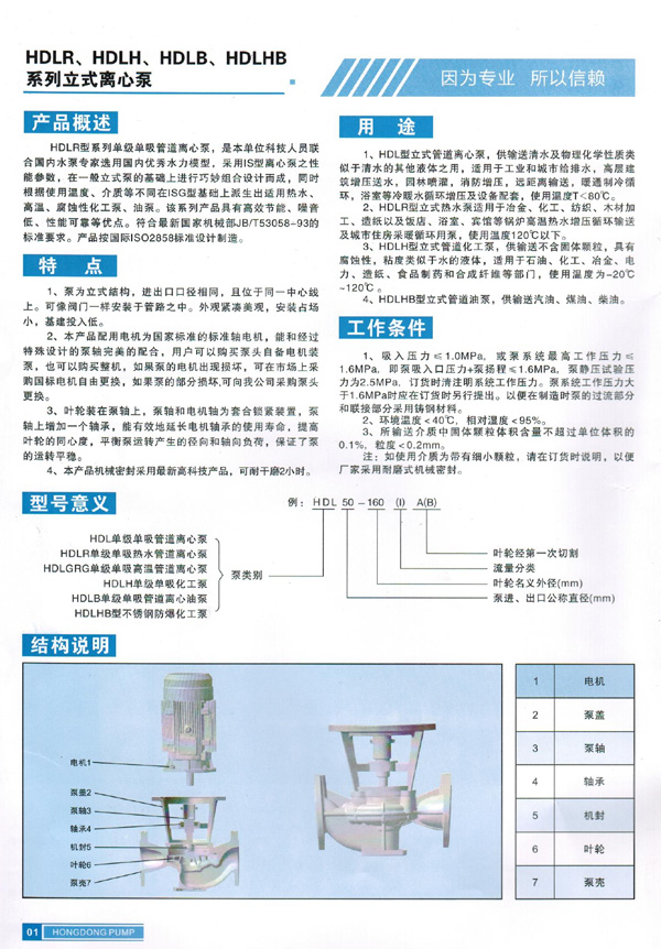 HDLR型系列單級單吸管道離心泵,是本單位科技人員聯(lián)合國內(nèi)水泵專家選用優(yōu)秀水力模型,采用IS型離心泵之性能參數(shù),在一般立式泵的基礎上進行巧妙組合設計而成,同時根據(jù)使用溫度、介質(zhì)等不同在ISG型基礎上派生出熱水、高溫、腐蝕性化工泵、油泵。該系列產(chǎn)品具有高效節(jié)能、噪音低、性能可靠等優(yōu)點。