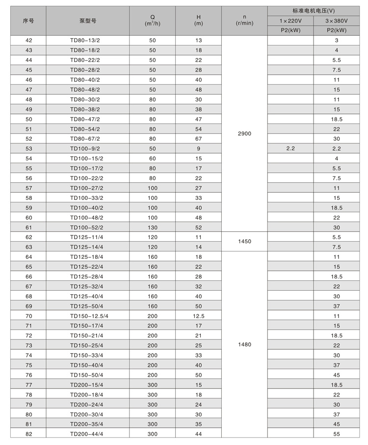 其中TD32-TD150口徑產品為加長軸結構,TD200-TD300口徑產品為便拆式結構,便拆式結構采用集裝式機械密封,更換機械密封時無需拆卸電機。